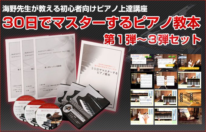 私も、いろいろなピアノ上達法のDVDを見てきましたが、ピアノ初心者が一番最初に学ぶ教材としては、 「30日でマスターするピアノ教本」 が最もオススメできます。