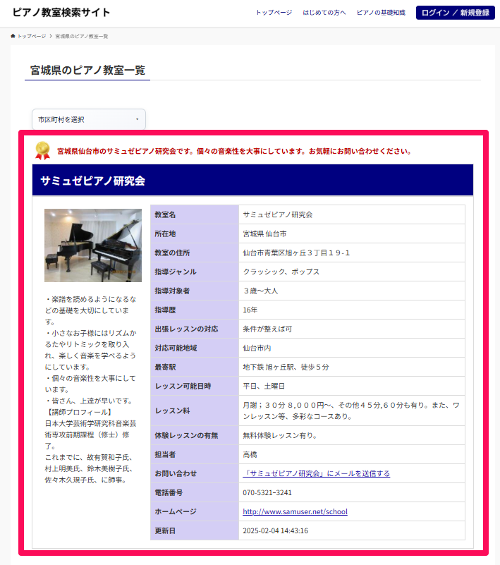 地域の入口となる「都道府県ページ」の一番上に、あなたの教室が表示されます。